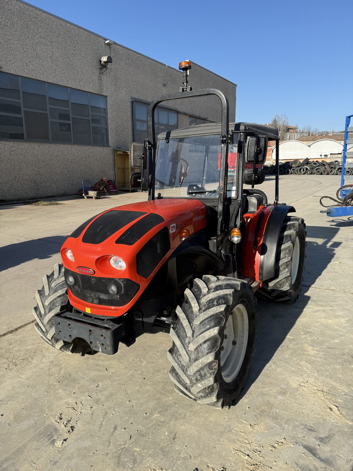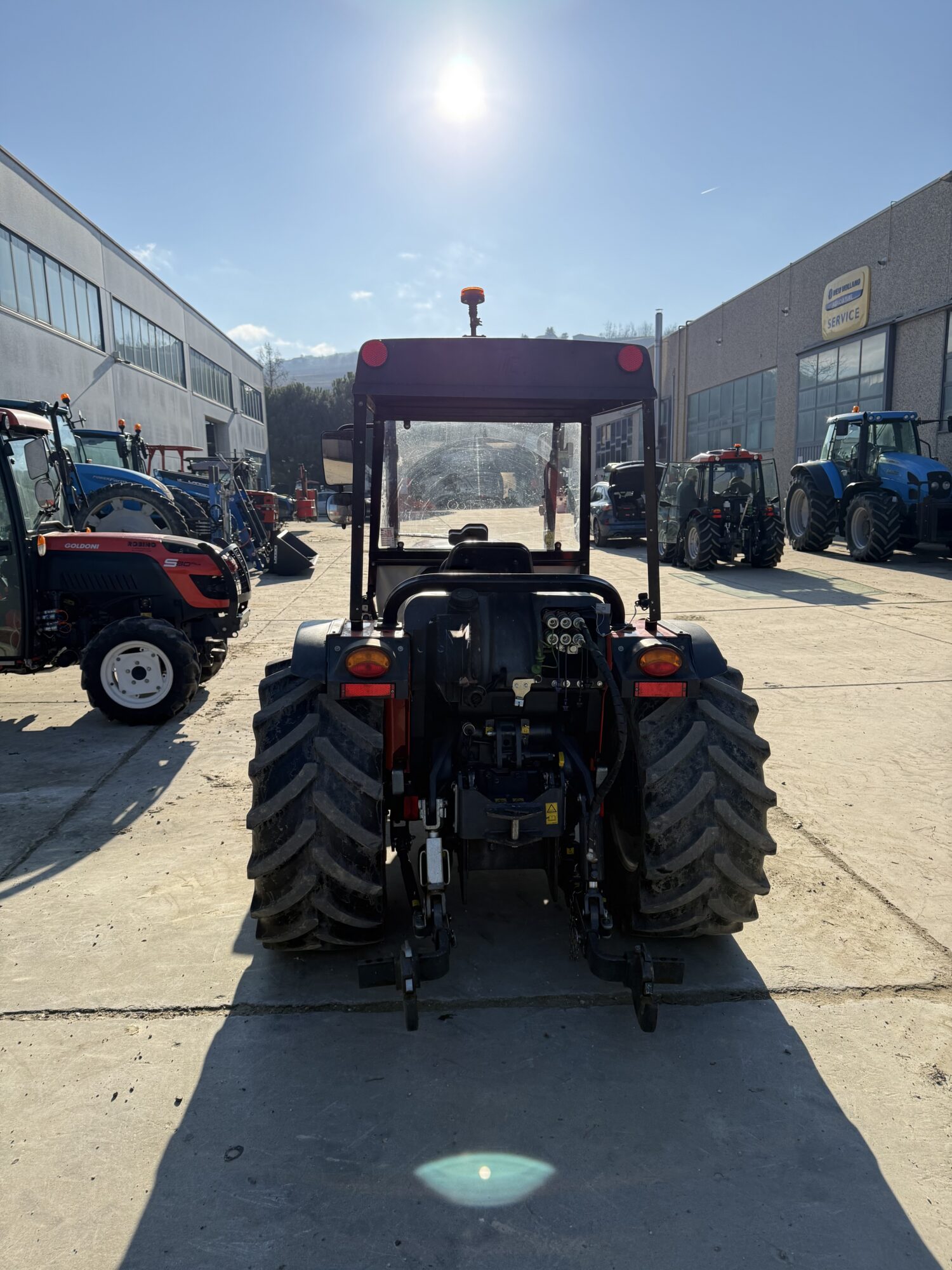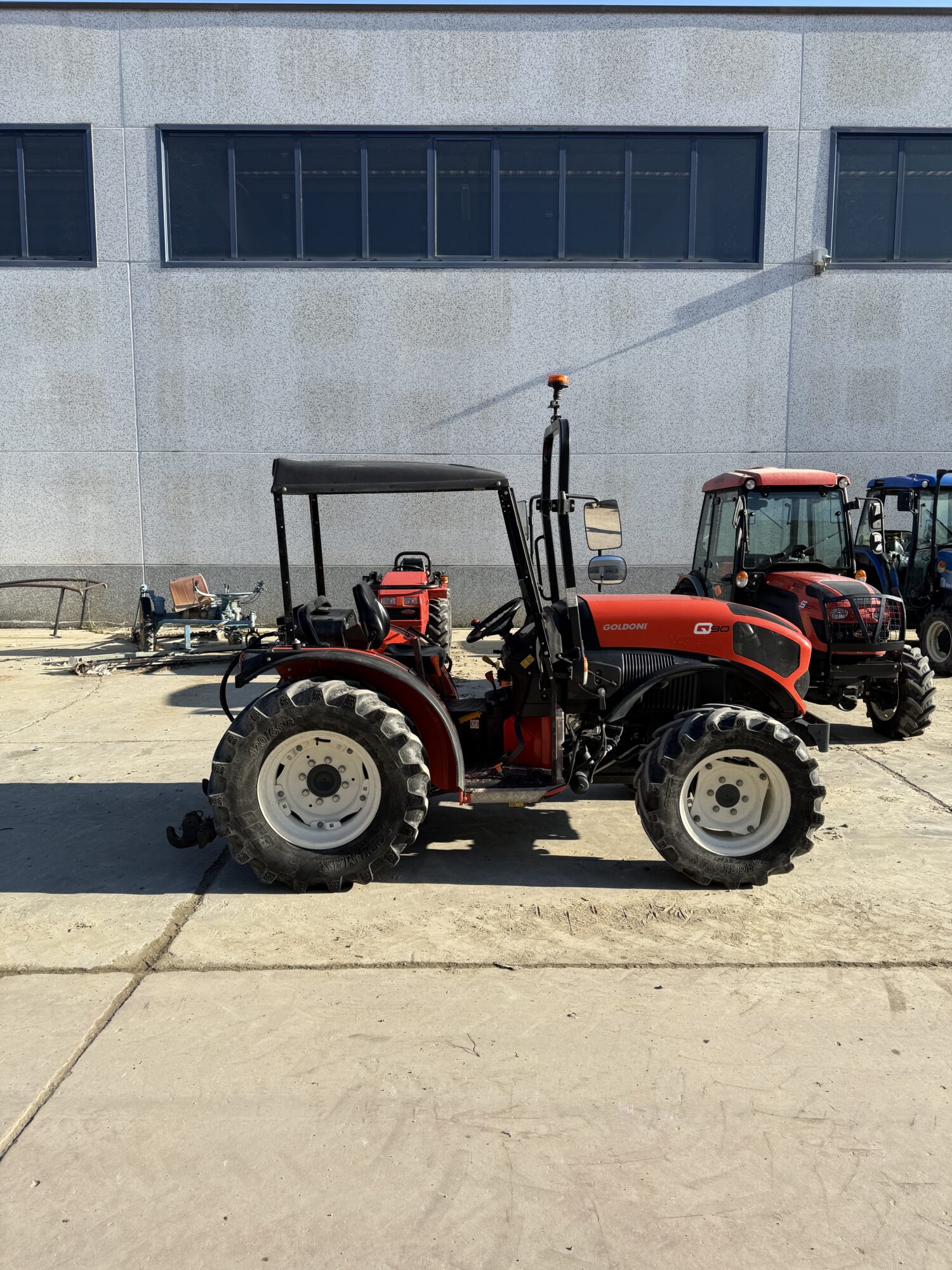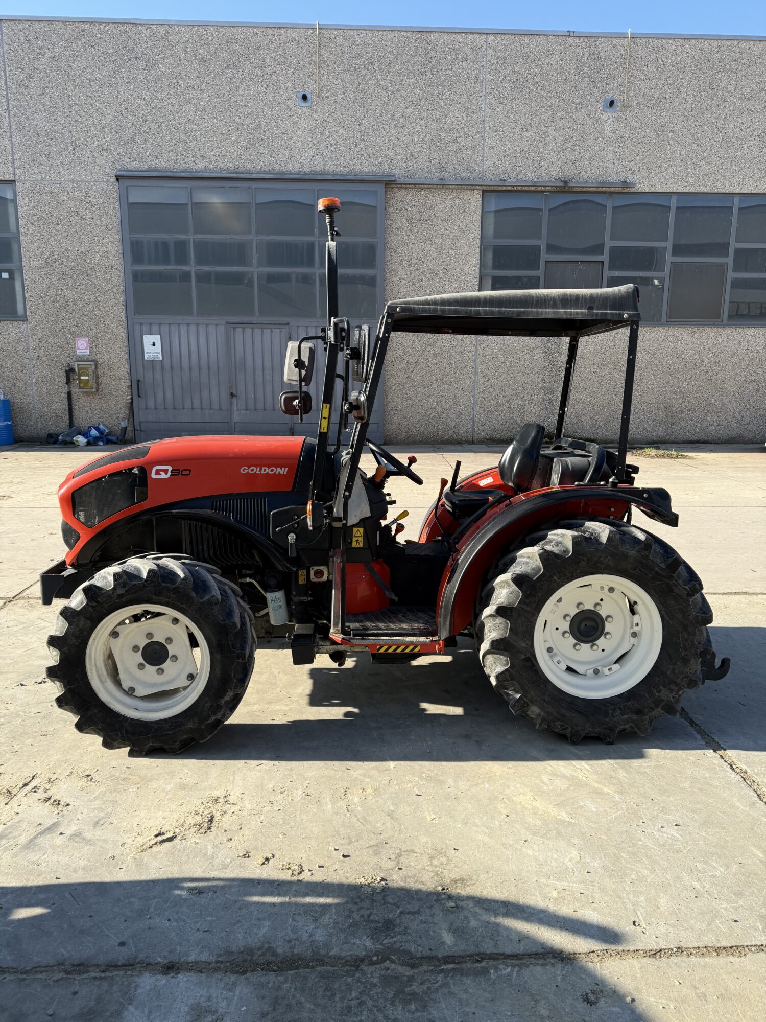 Trattore gommato usato GOLDONI Q90 con sole 1257 ore di lavoro originali, motore VM-FCA, 4 cilindri turbo diesel intercooler da 90 cv, trasmissione meccanica 40 km/h con cambio meccanico 24+12, mezza marcia meccanica ed inversore al volante meccanico sincronizzato, attacco a tre punti posteriore completo di bracci bi regolabili piegati a 90’, ganci rapidi, tirante destro idraulico, sollevamento posteriore idraulico con comando meccanico completo di posizione e sforzo controllato, presa di forza posteriore ad innesto servo assistito con comando meccanico, a 2 velocità 540/750 giri/min, impianto idraulico completo di 3 distributori idraulici posteriori, prese elettriche per attacco attrezzi, piattaforma di guida integrale ammortizzata su silent block, pneumatici 420/70r20 posteriori e 320/70r18 anteriori con cerchi regolabili, cappottina parasole TORINCAB completa di vetro anteriore e tergicristalli anteriore. Macchina molto bella. Per ulteriori informazioni contattatemi solo telefonicamente al cell 3493278206 Stefano.